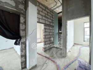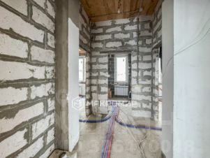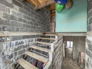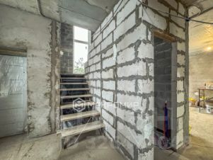 Дом имеет два этажа равных по площади. Фундамент монолит. Внешний периметр дома бетонные евроблоки. Межкомнатные стены газоблоки. Положена штукатурка. Сделана стяжка пола по всем помещениям.