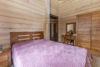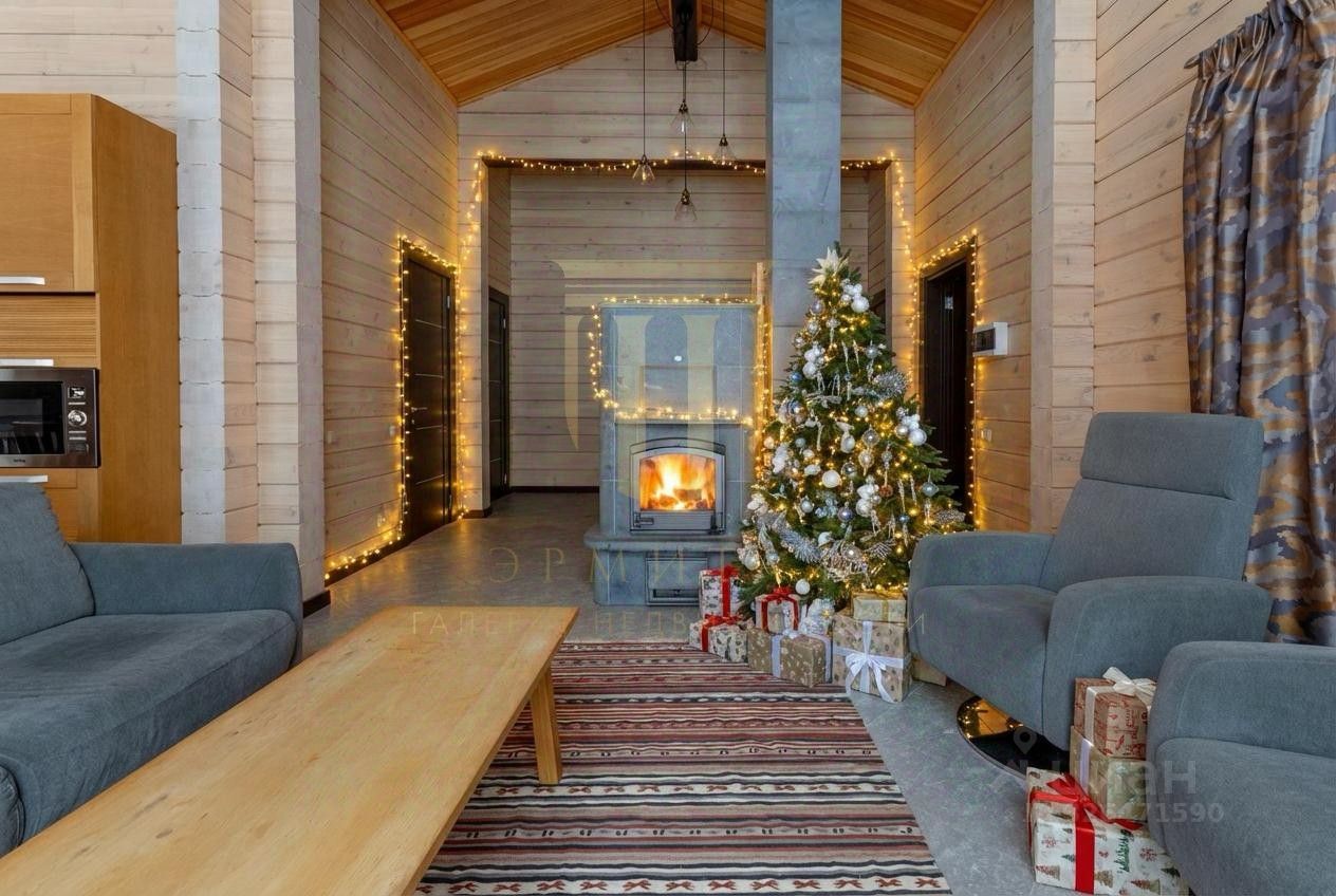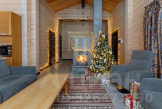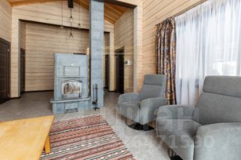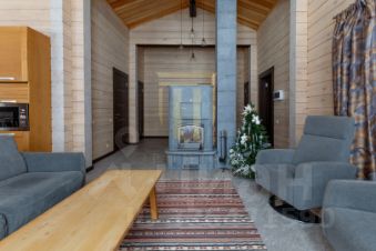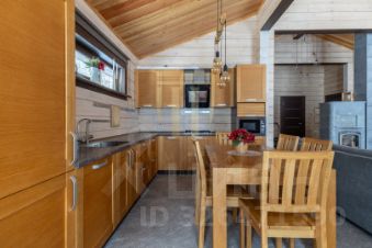 Дом полностью мебелирован и готов к проживанию. Особый уют в кухне-гостиной создает камин Tulikivi (пр-во Финляндия). Большой удобный раскладной диван привезен из Финляндии, два крутящихся кресла, стол и стулья - шпон дерева. Полностью укомплектованный кухонный гарнитур. В спальных комнатах кровати, диван