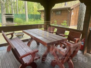 На участке имеется беседка, оборудованная летней кухней со шкафами и обеденной зоной. Мебель - массив дерева