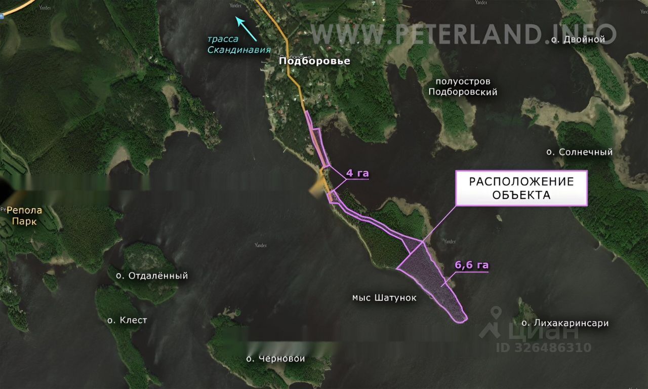 Земельный участок расположен в живописном месте на мысу Шатунок, который имеет вытянутую форму и омывается водами Финского залива.