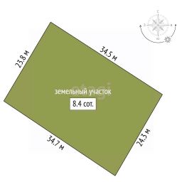 Просторная территория в 8.43 сотки окружена забором типа рабицы, обеспечивая безопасность и приватность.