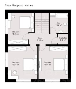 • 2 этаж: три спальни, санузел, гардеробная.