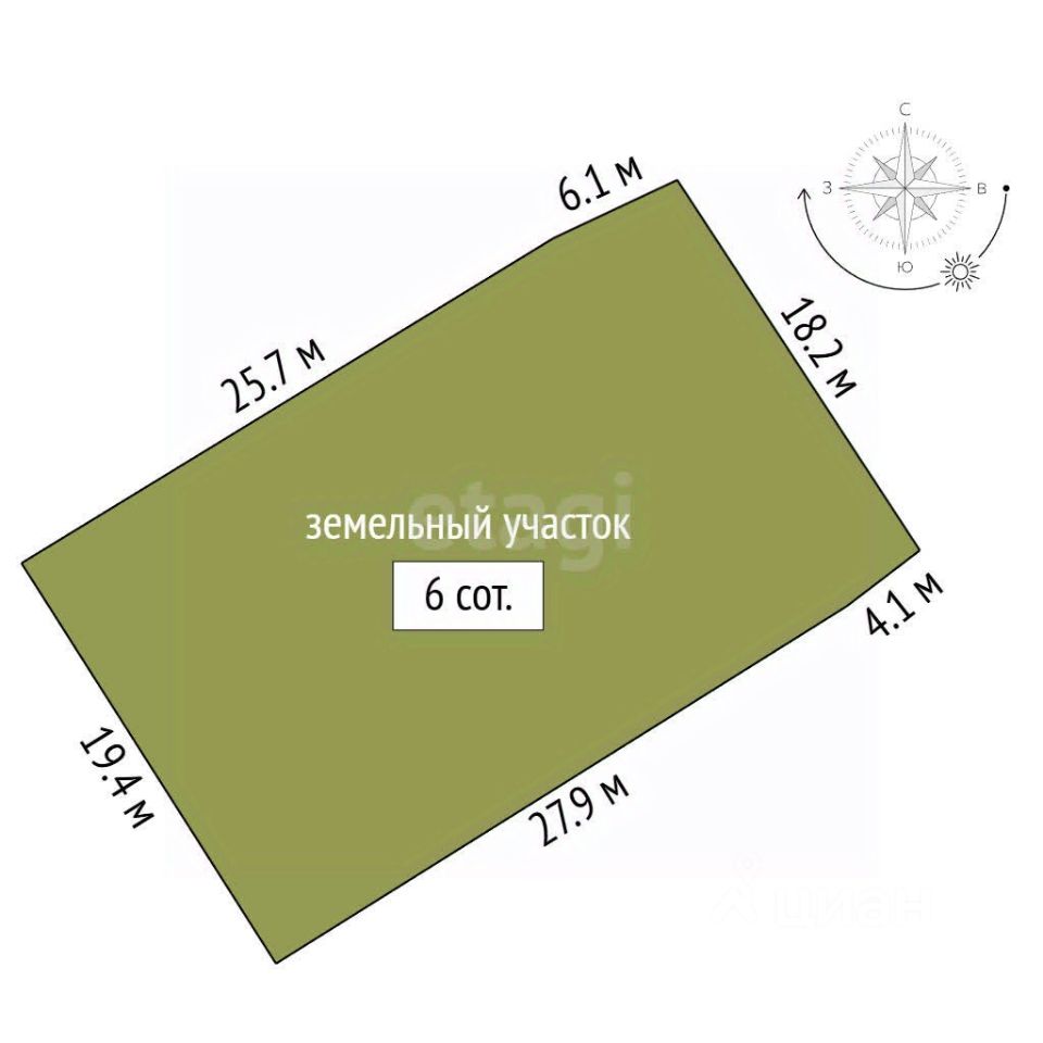 • Площадь 6 соток — ровный, ухоженный, с плодовыми деревьями, кустарниками и цветниками.