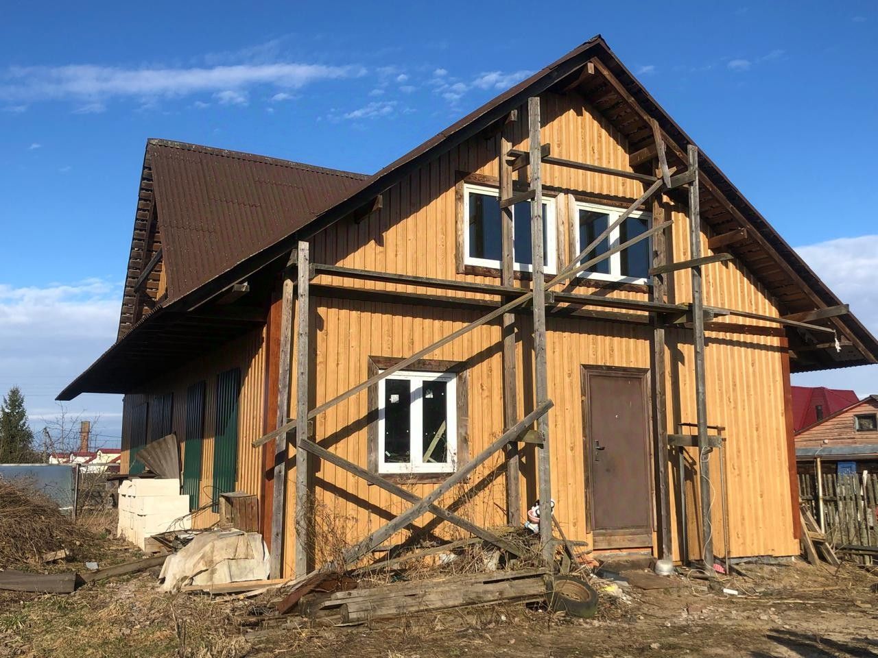1. Дом 2-х этажный (каркасный). Без внутренней отделки. Обшит профиль-листом.