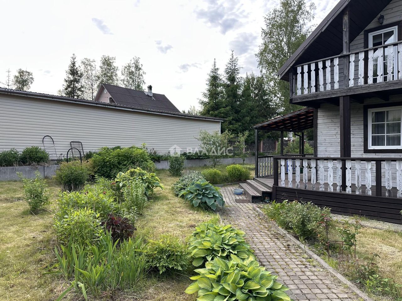 Вымощены дорожки, парковочная зона для авто под навесом.