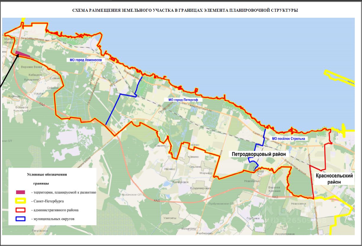 Масштабный земельный участок площадью 22, 19 га в престижном Петродворцовом районе Санкт-Петербурга, город Ломоносов. Идеальное расположение у КАД главный козырь проекта. Участок находится в одном из самых перспективных районов города Готовая зона для строительства современной городской среды. Территория уже подготовлена для реализации масштабных проектов Разрешенная высота застройки до 39 метров простор для самых смелых архитектурных решений. Кадастровый номер 78:40:2061302:3 все документы в полном порядке Категория земель земли населенных пунктов ВРИ для размещения коммерческих объектов, не связанных с проживанием населения (бизнес-центров, отдельных офисов различных фирм, компаний и других т. д. ) Условно разрешенные виды использования Среднеэтажная жилая застройка; Многоэтажная жилая застройка (высотная застройка) Основные расчетные технико-экономические показатели для многоэтажной жилой застройки (высотной застройки): Площадь участка, га 19, 16 Площадь застройки, кв. м 21 575 Максимальная общая площадь объекта капитального строительства, кв. м 182 162 Этажность, эт 12 Высота, м 39 Общая площадь квартир 127 583 Общая площадь встроенных (или торговых) помещений, кв. м 11 440 Население, чел. 4 557 Наполняемость, мест / посещ. в смену ДДУ 287 Наполняемость, мест / посещ. в смену школы 547 Работники, чел. 224 Посетители/учащиеся, чел. 1 279 В настоящее время в отношении объекта имеются следующие документы: Градостроительный план земельного участка Концепция Бронка 2022 Пояснительная записка ИРД Обоснование проектного решения ПЗ_ДПТ_Транспортная инфраструктура территории Пояснительная записка Карта планировочной структуры территорий Санкт-Петербурга Схема использования территории в период подготовки проекта планировки Схема планировочного решения развития территории В отношении территории разработана АРХИТЕКТУРНО-ГРАДОСТРОИТЕЛЬНАЯ КОНЦЕПЦИЯ РАЗВИТИЯ ТЕРРИТОРИИ земельного участка с кадастровым номером 78:40:2061302:3. Грандиозные планы развития территории: Новые современные магистрали и транспортные развязки, которые сделают район еще более доступным Современный транспортно-пересадочный узел на базе станции Ораниенбаум-I удобство для жителей и гостей района Развитие городских направлений с выходом на федеральные трассы ваш район будет расти вместе с городом! Готовая концепция, которая включает: Спортивные площадки для активного образа жизни с современным оборудованием Детские игровые зоны с безопасными покрытиями и игровыми комплексами Зеленые аллеи для спокойных прогулок с ландшафтным дизайном Удобные проезды между кварталами никаких проблем с передвижением!