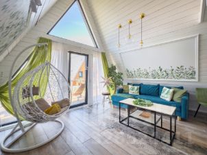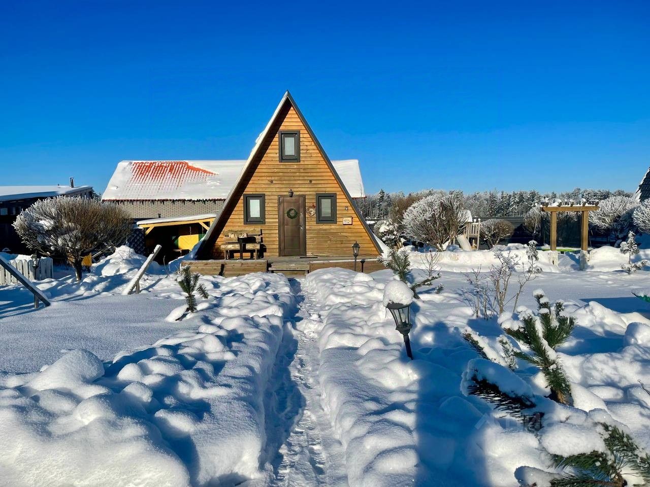 Продаётся дом в стиле А- фрейм, общей площадью -53,7 квм, выполненного в необычном Фирменном дизайне на участке 5 соток земли (участок прямоугольной формы). В данный момент функционирует как база отдыха, состоящая из 4 домов и бани с домиком администрации! Дом расположен в уютном месте рядом с хвойным лесом и озером Мадалаярви, всего в 30 мин от города и в 25 км от Санкт-Петербурга - добраться можно как своём личном транспорте. Так же и общественном (электричка, автобус).