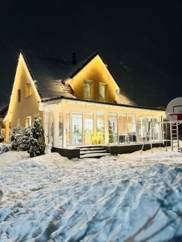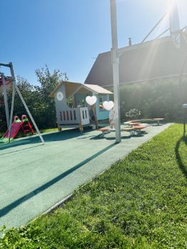 На участке есть зона огорода, 2 теплицы. Детская площадка Ksil (2 качелей, домик, баскетбольной кольцо). Мангальная зона с печкой и дровенником. Стоянка на 2-3 автомобиля. Открытая терраса из террасной доски между баней и домом.