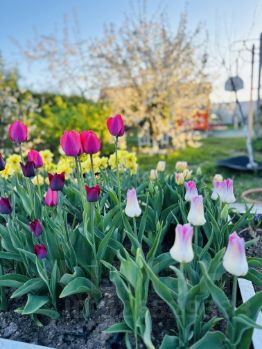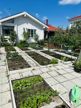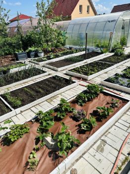 На участке много плодовых деревьев и ягодных кустарников, декоративных многолетних растений (гортензии, розы, барбарисыТунберга, можжевельники и тд).