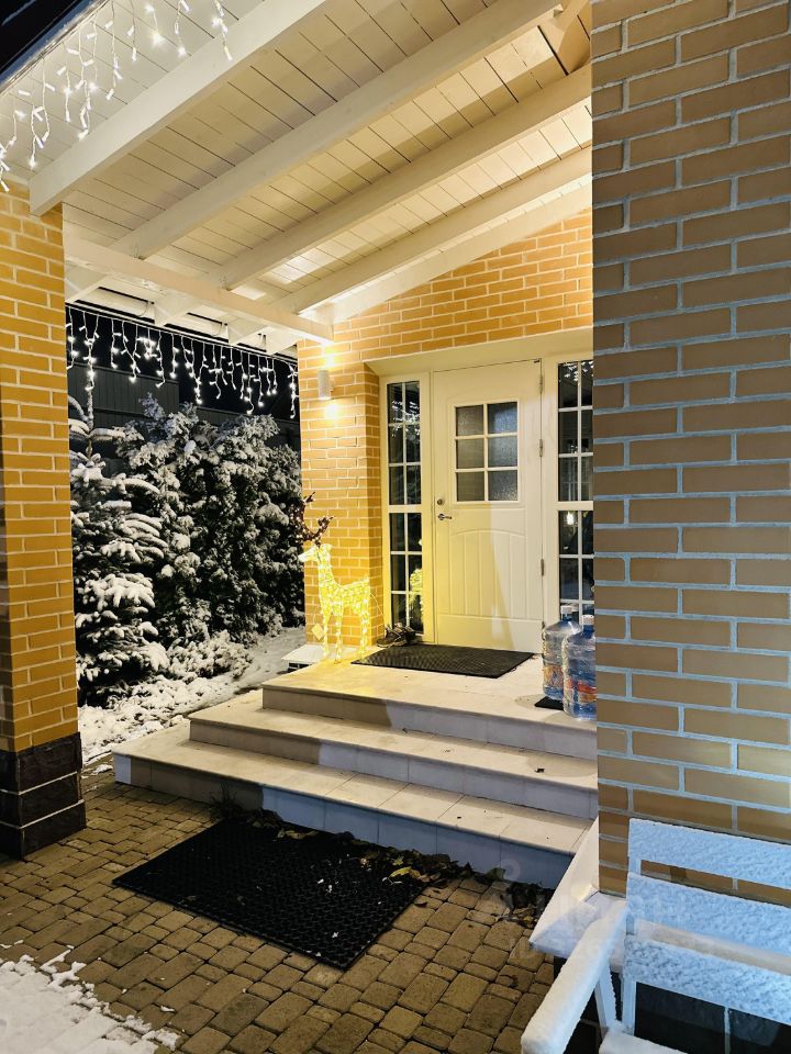 Материал стен: газобетон, утеплитель, облицовка кирпич, фундамент ушп. Стены толщиной 550 мм. Перекрытия монолитные. Кровля: утеплитель 200 мм и керамическая черепица. Энергосберегающие двухкамерные окна. Финские входные двери, замки Abloy. Принудительная вентиляция (рекуператор). На первом этаже конвекционный камин с духовкой из талькохлорита. Первый этаж и санузел второго - теплые полы.