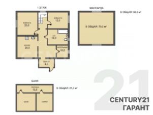 Баня с просторными парилкой и предбанником