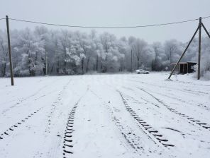 Электрический столб на участке, прекрасный подъезд.