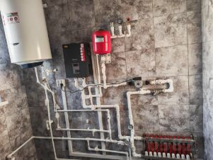 Подключено водоснабжение и система "теплый пол"(pex-a) по всему дому;