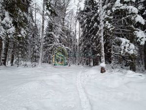 Расположен между красивейшими озерами Воякоярви и Кортелампи, неподалеку находится лыжная база, конный клуб Карьер,