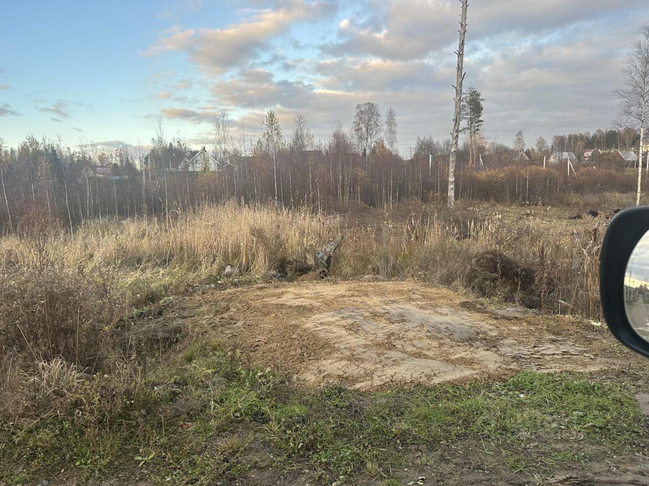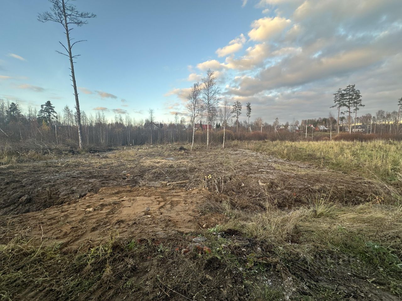 Ровный участок прямоугольной формы в середине поселка в 15-20 минутах от Санкт-Петербурга по Новоприозерскому шоссе.