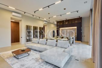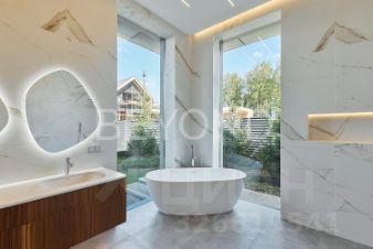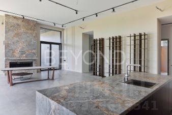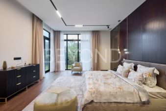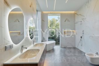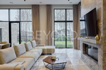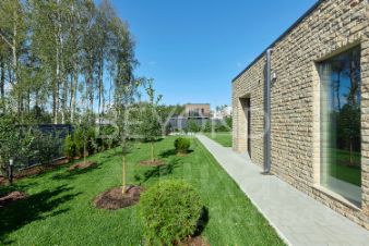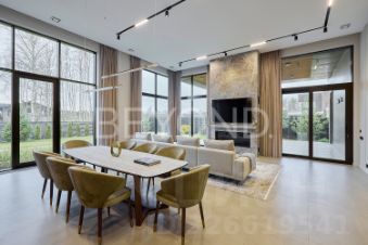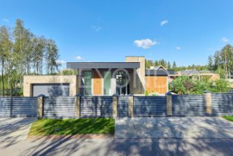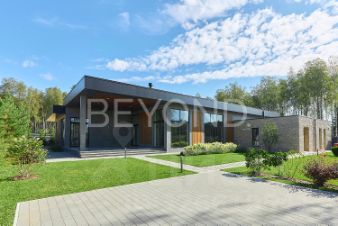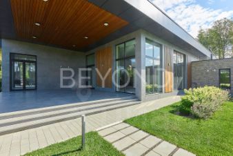 Предлагается к продаже эстетический и функциональный загородный дом площадью 430,7 кв.м, построенный с учетом всех современных технологий. Дом построен в один этаж на монолитной плите 350 мм, стены возведены из газобетона 400 мм (ЛСР). Фасад обрамлен керамогранитом, планкеном и лиственницей, а кровля дома выполнена из монолитной плиты 200 мм с утеплением. Установлены панорамные алюминиевые окна "Алютех", что дает большое количество света в доме. Установлена приточно-вытяжная вентиляция с рекуперацией и кондиционированием. Архитектор и дизайнеры уделили отдельное внимание рациональному зонированию интерьера и грамотной планировке в доме, а безусловно исключительной чертой дома являются потолки высотой 4,2 м, что делает каждое помещение просторным и объемным. При входе в дом расположена гардеробная зона, далее мы попадаем в большую кухню-столовую (вся бытовая техника Miele, Liebherr и Neff) и просторную гостиную с камином с широкой топкой 1,5 метра, а также cheff-кухню с профессиональным оборудованием из нержавеющей стали. Дом грамотно зонирован, спальные зоны отделены. Большая хозяйская мастер-спальня со своим гардеробом и санузлом, две детские мастер-спальни и гостевая комната, в каждой комнате окна в пол и отдельные уборные. Обогрев всех помещений осуществляется за счет внутрипольных конвекторов и системы теплого пола с антифризом. Отдельное помещение для хозяйственной/постирочной зоны с стиральной и сушильной машиной Miele. Дом расположен на благоустроенном участке площадью 1500 кв. м. По периметру участка сделан ландшафтный дизайн, высажены плодовые деревья, сосны, туи, гартензии, клен и новогодняя елка. Установлена система автополива. Есть система снеготаяния перед домом, что позволяет комфортно выходить из дома в зимнее время года.