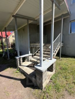 Сварная металлическая лестница, ступени из лиственницы. Установлены двухкамерные стеклопакеты.