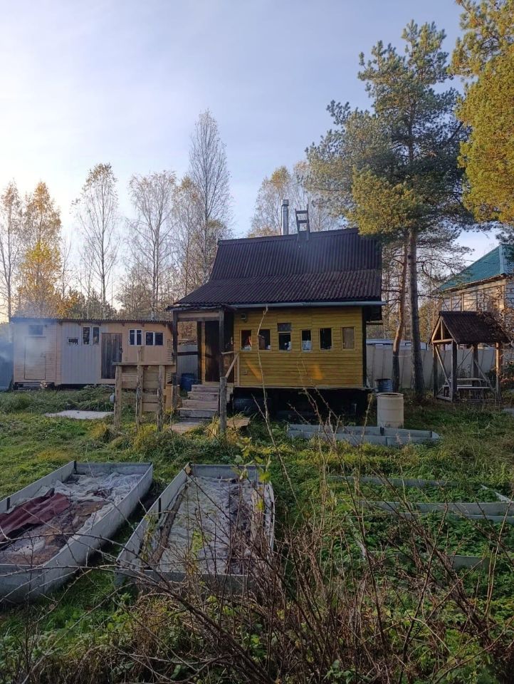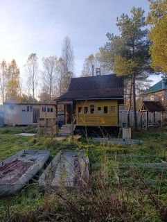 Участок полностью освоен: новые грядки огорожены шифером, удобрены и подготовлены к посадке; чеснок уже посажен. Из посадок есть крыжовник, черная и красная смородина, жимолость, малина, клубника, китайский лимонник, ревень ,топинамбур, бодан. В глубине участка сохранен небольшой участок дикого леса с черникой, голубикой и зверобоем.
