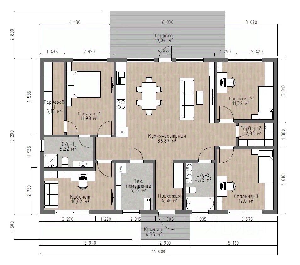 * большая кухнягостиная (36,87 кв. м) - отлично подойдёт для семейных обедов и встреч с друзьями;