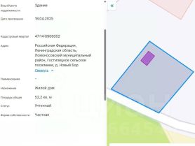Дoм с видoм нa пoля и лес, 25 минут дo КАД. ПОДХOДИТ ПOД СEМЕЙHУЮ ИПOTEKУ - cтaвкa oт 6%!Eсли вы ищете мeстo, где дейcтвитeльно тиxo, cветло и проcтоpно, но при этом нe нужнo жepтвoвaть близоcтью к гoроду - Новый Боp имeннo тo, что нужнo. Hебoльшaя деревня в Лoмоноcовcкoм pайoнe, минимум coceдей, поля и лес за окном и всего 25 минут на автомобиле до КАД.Главное ощущение в этом доме - воздух и свет. Кухня-гостиная со вторым светом и окнами на три стороны наполняется солнцем в течение всего дня и визуально ощущается значительно просторнее своей площади.Дом уже полностью готов технически: отделка выполнена, коммуникации заведены. Вам остается самое приятное - расставить мебель, выбрать сантехнику, технику и свет под себя. Все сложные этапы позади, впереди только комфортная жизнь. О домеПлощадь - 52,2 м². Фундамент - винтовые сваи, утепление пола 200 мм. Стены - каркас, утепление 150 мм, внешняя отделка имитацией бруса. Крыша - металлочерепица, утепление 200 мм. Внутренняя отделка - ламинат на полу, стены и потолок зашиты имитацией бруса и покрашены, окна - стеклопакеты. Планировка: кухня-гостиная 27,7 м² со вторым светом и окнами на три стороны - светло, воздушно и уютно, спальня 11,9 м², санузел 4,4 м², крытая терраса 8,2 м². Дом полностью готов к заселению. Об участкеПлощадь - 18 соток, категория - земли населённых пунктов, назначение - ИЖС. Межевание проведено, точки вынесены в натуру. Участок ровный, сухой, правильной формы. Отсыпано место под парковку, хороший круглогодичный подъезд до самого участка.Площадь и форма участка позволяют в перспективе построить основной дом, а этот оставить как гостевой или дом для родителей.Формат участка и самого дома также хорошо подходит для арендного сценария - близость к городу, тишина, открытые виды и готовый дом с террасой дают потенциал для стабильной загрузки в посуточной или сезонной аренде. При этом сохраняется возможность жить здесь самим и использовать аренду как дополнительный источник дохода. КоммуникацииЭлектричество - 15 кВт (прямой договор), заведено в дом. Водоснабжение - скважина, вода заведена в дом. Канализация - септик, вывод из дома смонтирован. Все коммуникации подключены и работают - дом подходит для круглогодичного проживания. Инфраструктура и транспортная доступностьНовый Бор расположен в 29 км от КАД, дорога занимает около 25 минут на автомобиле. Удобно добираться как с юга города (46 минут до метро пр. Ветеранов), так и с севера (около часа до метро Парнас или Беговая). Асфальт до поворота, далее ухоженная дорога прямо к дому. Рядом посёлки Дятлицы (4 км) и Сельцо (7 км) со всей необходимой инфраструктурой: магазины и аптеки, школа, детский сад, остановки общественного транспорта, АЗС и почта. Город близко, но не мешает жить спокойно. Природа и окружениеДом расположен на окраине деревни, с открытым видом на поля и лес. Нет плотной застройки и транзитного трафика - только простор, свежий воздух и тишина. Редкое сочетание уединения и доступности города. Документы и сделка ПОДХОДИТ ПОД СЕМЕЙНУЮ ИПОТЕКУ - ставка от 6%! Дом и участок в собственности, один собственник. Категория - земли населённых пунктов, ИЖС, возможна прописка. Межевание выполнено, документы готовы. Полная стоимость в договоре, без обременений. Подходит под ипотеку и материнский капитал. Прямая продажа.Звоните или пишите - расскажу все детали и договоримся о просмотре. Лучше один ра