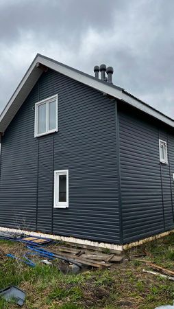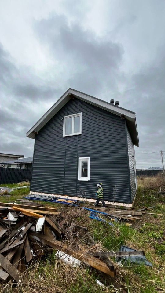 Дом представляет собой двухэтажное строение общей площадью 88 квадратных метров, построен 2023 году из сип панелей, фундамент железобетонная плита 300, теплоизоляция, кровля черепица, стеклопакеты, металлическая входная дверь.