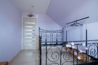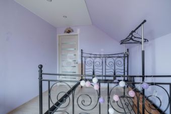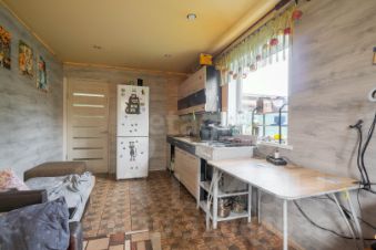 Двухэтажная планировка дома функциональна: на первом этаже расположены просторная кухня-гостиная, санузел с душевой кабиной и кладовая. На втором этаже находятся три изолированные спальни и еще одна кладовая, к которым ведет удобная лестница. Для уюта в холодное время года на кухне и в прихожей установлены теплые полы.