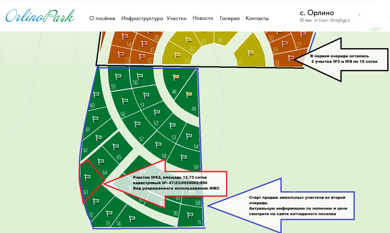 Продается замечательный земельный участок ИЖС в новом, современном коттеджном поселке "Orlino Park" комфорт класса. Участок в окружении густого смешанного леса (грибы,ягоды), в пешей доступности (700 м) находится живописное "Орлинское озеро" с пляжами, "Серебряный" родник, а также Храм Преображения Господня. Идеальное место для загородного отдыха!