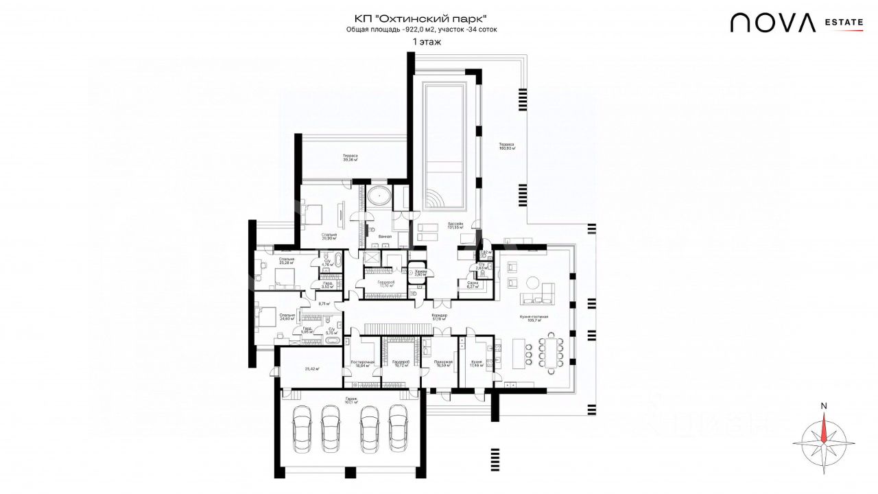 Арт. 128181058 Архитектура, воплотившая в себе дух свободы благодаря объему, брутальность благодаря строгими геометрическим формам и безупречный вкус благодаря цветовым решениями и материалам. Дом расположен в одной из самых востребованных локаций, коттеджном поселке "Охтинский парк", в 6-ти км от КАД на Севере Петербурга, в 5-ти минутах от курорта "Охта Парк" со всей многогранной инфрастуктурой района. Дом общей площадью 922 кв.м. расположен на просторном участке размером 3400 кв.м. с видом на внутренний сад с еловыми деревьями. Свежий взгляд на архитектуру и инновационные решения превосходят пожелания даже самых требовательных клиентов. Увеличенная высота потолка от 4,4 м до 5,4 метра на первом этаже и 3.9 м на втором этаже позволит насладиться объемами дома, а количество широкоформатных алюминиевых окон от бельгийского производителя Reynaers наполнит дом солнечным светом и свежим воздухом. Новаторский и долговечный фасад дома выполнен из итальянского широкоформатного керамогранита Laminam, состоящего из пород и минералов, с исключительной прочностью, устойчивостью к огню и российским морозам, химии и царапинам. Фасадный планкен из лиственницы смягчает геометрию благородными природными оттенками и шикарно гармонирует с ландшафтом. Планировочное решение дома рассчитано на простор и отдых всех членов семьи. Вся основная площадь сконцентрирована на первом этаже, где центральное место занимает кухня гостиная площадью 117 кв.м. с камином и обилием окон для естественного освещения. Отдельного внимания заслуживает мастер спальня с отдельным выходом в бассейн (длинной 13м) и СПА, где предусмотрена финская сауна, турецкий хамам, джакузи. Еще 2 полноценные мастер спальни расположены на первом этаже и хозяйственные комнаты : постирочная и кладовая. Второй этаж рассчитан на 2 мастер спальни, кабинет и винную комнату, а также вторую гостиную с возможной модификацией назначения по предпочтениям. Автолюбителей порадует гараж на 4 автомобиля со стеклянными воротами и отдельным входом в дом, что максимально комфортно в дождь или снег. В дом заведены все коммуникации: Магистральный газ, Электричество 60 кВт, центральное водоснабжение, септик, оптоволокно. Обслуживанием поселка занимается профессиональная Управляющая Компания, безопасность обеспечивает круглосуточная охрана. На территории коттеджного поселка сохранен потрясающий хвойный лес, асфальтированы дороги и тротуары, есть детские площадки для разных возрастов, а в центральной части расположен частный детский сад с языковым уклоном. За пределами поселка в 5-ти минутной доступности есть вся необходимая инфраструктура: Лучшая частная школа "Сверхновая", Частная школа "Ламбери", курорт "Охта парк" с горнолыжными трассами, чудесным зимним катком, 6-ю ресторанами, спа и фитнес комплексом "OHTAKAI" на 4 500 м2, теннисные корты и конный клуб, фермерские лавки, кафе и продуктовые маркеты. Идеальный дом без компромиссов, для тех, кто ценит качество и комфорт.