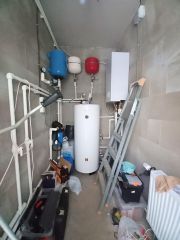 Отопление дома производится, от Электрического котла. К дому подведено 15 квт эл-ва. Вода, — скважина. Канализация, — биостанция.
