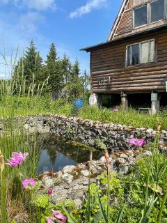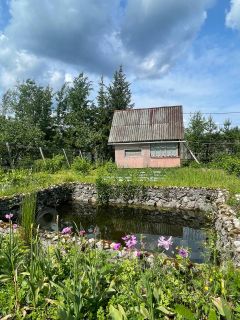 Баня, оформленные грядки, пруд, хоз. постройки.