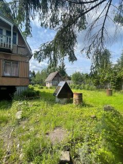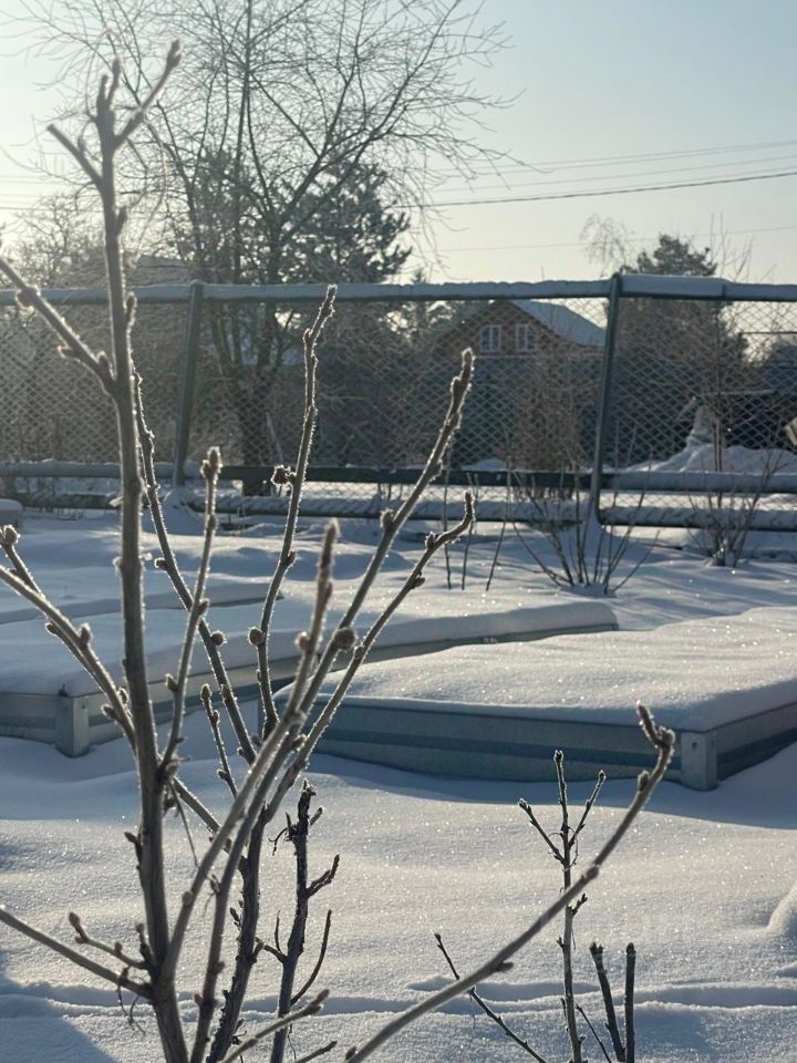 На участке садовый дом с двумя комнатами, кухней, верандой. Дом 44,3 кв.м.