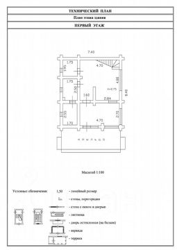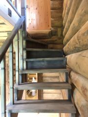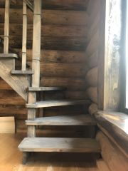 основательная лестница ведет на второй этаж, где имеются четыре помещения — холл и три комнаты, с/у.