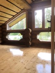 К Вашему вниманию предлагается новый интересный и очень качественный жилой дом из окаренного бревна на монолитном железобетонном фундаменте в г. П. Вырица. Основательный деревянный дом, раскрывающий красоту и уют деревянного домостроения. Наружные стены из массивных сосновых бревен, бережно отшлифованных и пропитанных защитным составом. Внутри частично выполнена отделка из кедровой древесины. Дом пропитан теплом и ароматами натуральной древесины, стены сохраняют замысловатый узор, оттененный колоритом пропитки. Интересные решения интерьера, небольшие, уютные помещения, много света, великолепные виды из окон на придомовую территорию — все это будет доставлять удовольствие и радовать его будущего владельца.