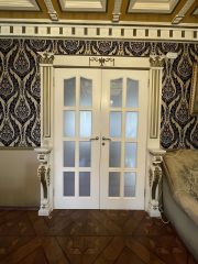 Материал наружных стен первого и второго этажей - деревянные, на первом этаже расположена прихожая, кухня, парадная кухня-столовая, гостиная.