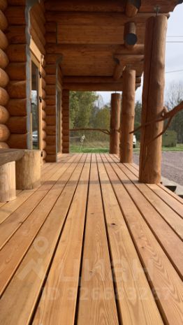 Терраса: С массивными рублеными столбами (диаметр 40 см) и полом из лиственницы (не боится влаги).