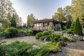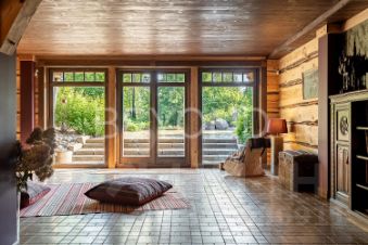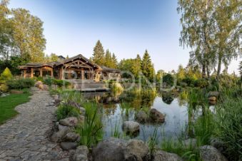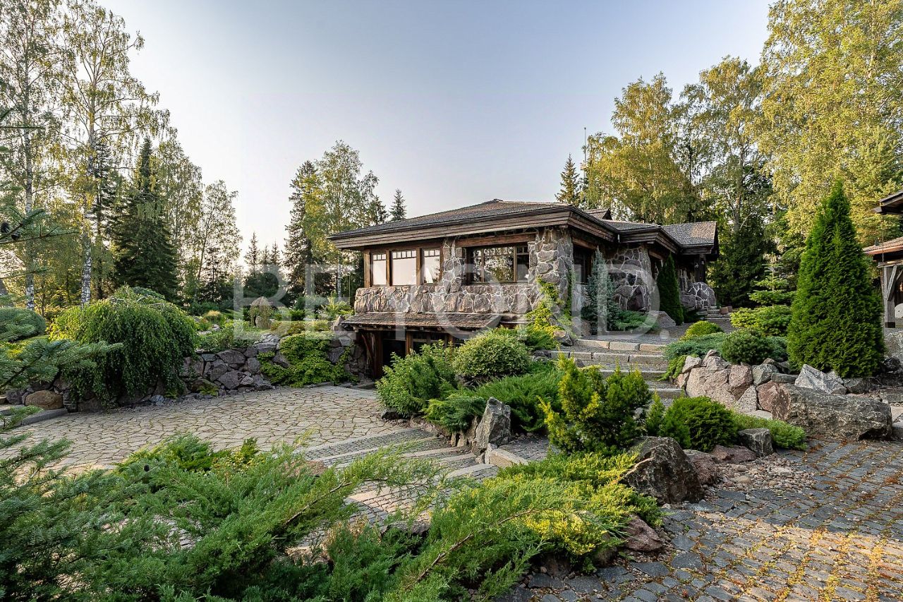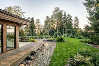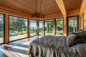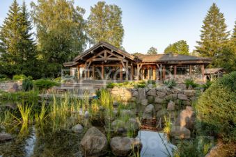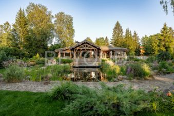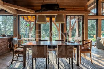 Авторское шале площадью 440 кв. м с территорией 40 соток на вершине холма с открывающейся панорамой на озерную гладь и лесные просторы природного заповедника.