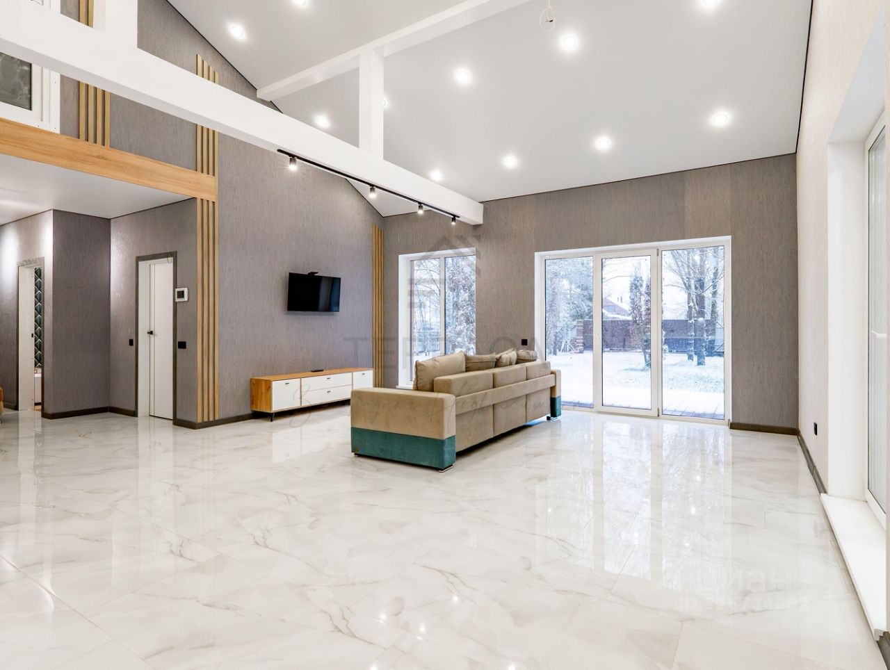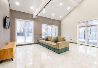 В интерьере использованы современные стилистические решения, а высокие потолки и большие панорамные окна создают ощущение простора и объема.