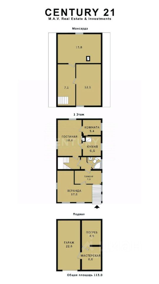 Удобный цокольный этаж включает вместительный гараж (22 м²) и подвал (8,9 м²) для хранения вещей и инвентаря.