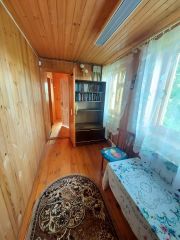На территории находится беседка, место для огорода, фундамент и небольшой крытый домик.