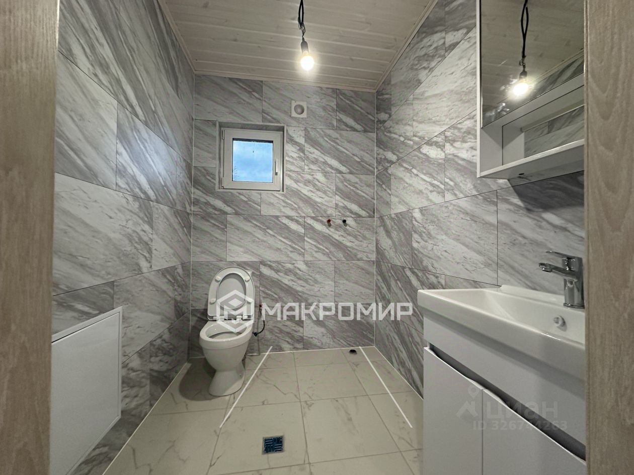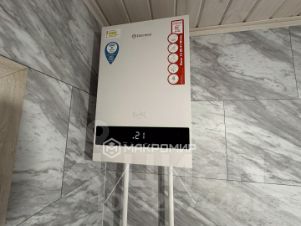 В санузле установлен унитаз, тумба с раковиной и зеркалом, установлена вентиляция, сделан электроподогрев с терморегулятором, водопровод оборудован подогревающим кабелем.