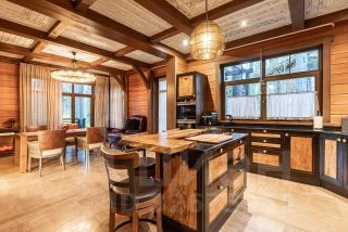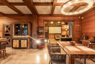 Дизайн-проект дома напоминает стиль шале, использованы натуральные эксклюзивные материалы-ощущение уюта и спокойствия.