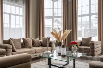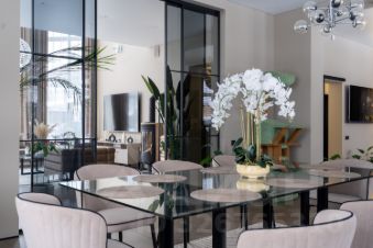В доме сделан свежий дизайнерский ремонт в стиле современная классика, дом полностью мебелирован европейской мебелью и техникой. Вся мебель и техника остаются покупателю.