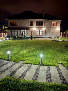 участок полностью разработан, выровнен, сделан ландшафтный дизайн с ночным освещением