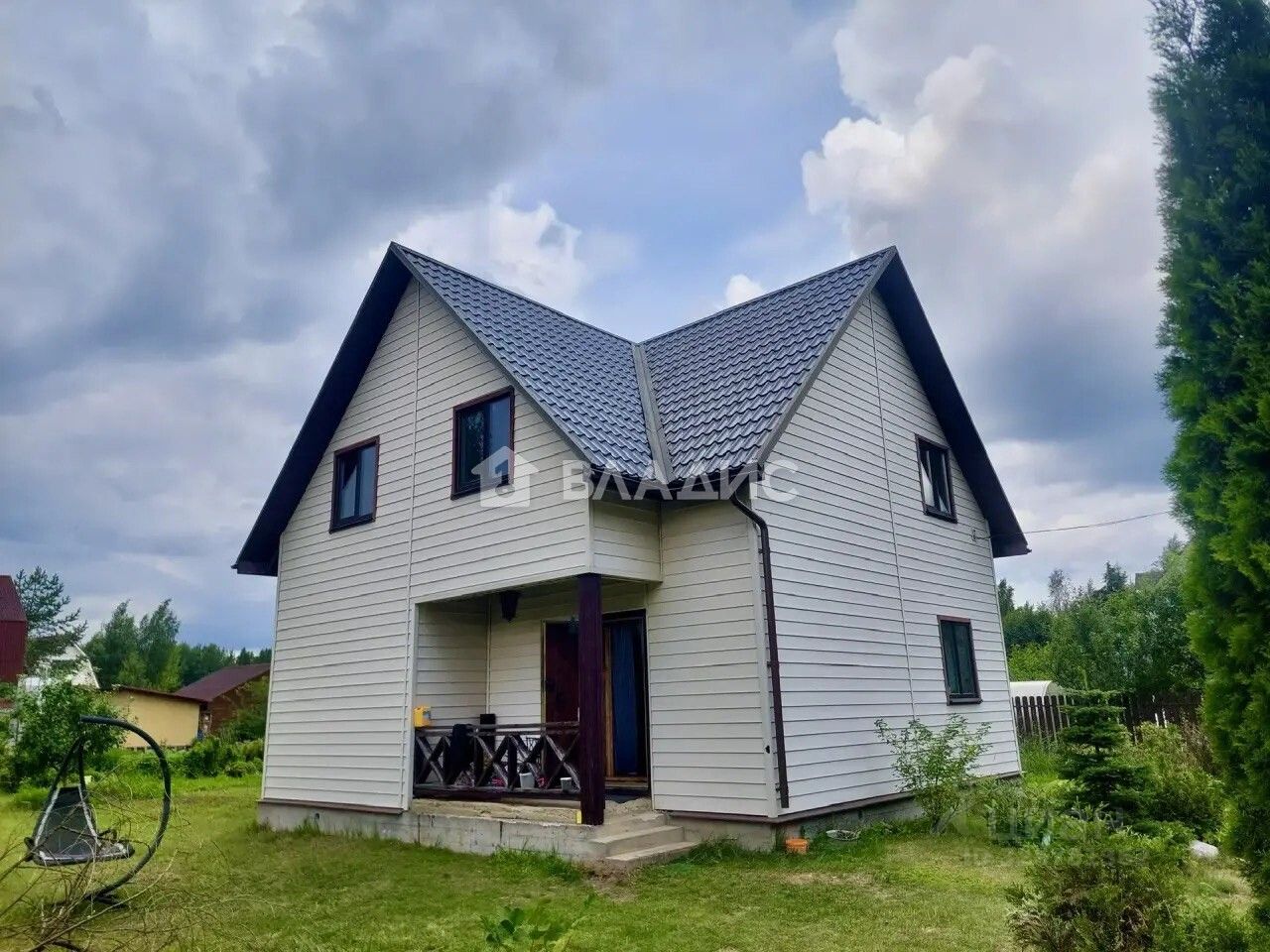 Снаружи дом отделан довольно редким сайдингом, имитирующим широкую доску/брус.