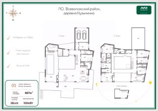 Арт. 129638494 РЕДКОЕ ПРЕДЛОЖЕНИЕ! Роскошный дом для самых взыскательных покупателей на самом берегу реки! Иногда находится место, где все совпадает, где замирает время.. Место, в которое влюбляешься с первого взгляда! Среди многолетних хвойных лесов, на берегу реки Невы расположилась великолепная современная загородная резиденция, в которой есть все для комфортабельной жизни: просторные эргономичные планировки, СПА с бассейном и шикарные панорамные виды. Свежий воздух, тишина, полная приватность и при этом в 30 минутах от города! Идеальное место для жизни и отдыха - собственный выход к воде, свой пляж для купания и рыбалки, лес - для сбора грибов и ягод - настоящей загородной жизни! Дом, в котором можно провести время в кругу друзей и близких, наслаждаясь захватывающими видами природы, чистым воздухом и неспешным течением реки! Летом здесь можно наблюдать проплывающие корабли, а зимой ледоход и льдины! Поднимитесь на 2 этаж, чтобы восхититься горизонтом с великолепными рассветами и яркими закатами! Дом для истинных ценителей красоты природы и романтики! Это дом, где природа становится частью интерьера! Архитектурное решение дома эстетика минимализма, современного дизайна и функциональности! Он впечатляет своей площадью - 867 квм (жилая площадь 680 кв.м), пропорциями и высотой потолка до 8 м! Панорамное остекление по всему периметру создает ощущение единства с природой, пространства, максимального наполнения светом и никаких чужих окон перед вами! Дом полный естественной красоты, в который хочется возвращаться! При строительстве использовались дорогие и качественные материалы: наружные и внутренние стены - монолит, панорамное остекление - окна и фурнитура немецкий производитель Schuco, шведская приточно-вытяжная вентиляция Системэер и пр. В концепции интерьера объединены 2 принципа эстетика минимализма и функциональности: 1 этаж это единое пространство, в котором соединены кухня-столовая и роскошная гостиная (95 кв.м) с панорамными окнами и вторым светом (h потолка 8 м) и выходом на просторную террасу. Здесь можно провести время в семейном кругу, устроить праздник, приготовить барбекю или просто наслаждаться пением птиц и солнечными ваннами. Сразу за окнами гостиной открывается невероятный вид на реку! Настоящий уют интерьеру гостиной придает дровяной КАМИН! И, конечно, особого внимания заслуживает шикарный внутренний, стеклянный атриум из панорамных окон гостиной открываются виды на уютный дворик атриума, с хвойным ландшафтом и ручейком. Кроме того, на 1 этаже предусмотрены: прихожая с отдельной гардеробной при входе, кинозал или гостевая спальня (без отделки), гостевой санузел, оборудованная постирочная, котельная, мастерская, отапливаемый гараж на 2 автомобиля (ворота Hrmann). Правое крыло дома представлено просторной СПА зоной с 9-метровым переливным бассейном, оборудованным профессиональным противотоком. Бассейн закрывается покрытием из ламелей, автоматически сматываются на барабан на дне. В спа зоне также расположены баня из канадского кедра со стеклянной стеной, душевая и большая купель. Из зоны спа предусмотрен выход на открытую террасу, где в теплые летние вечера можно почувствовать атмосферу настоящего курорта! 2 этаж сохраняет общую стилистику дома и представлен круговым холлом и выходом на великолепную террасу 65 кв.м. Гла