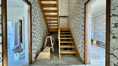 На 2-х участках, расположены каркасные 2-этажные дома общ. пл. 82 м² каждый, на свайном фундаменте. Подойдут как временное жильё на период стройки или как стартовые дачные дома.