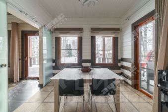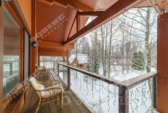Основной жилой дом из клееного бруса общей площадью 280 кв.м имеет два этажа , террасу на две стороны по первому этажу и балкон на втором . На первом этаже размещены кухня-столовая , гостиная и кабинет, бытовая комната . Второй этаж - это зона отдыха с тремя спальными. На обоих этажах имеются гардеробные , ванные и душевые , туалеты.