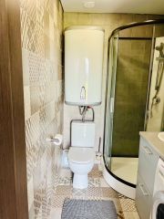 В дом вода подается из скважины, установлен электрический водонагреватель