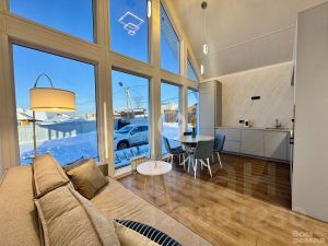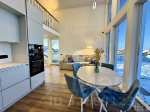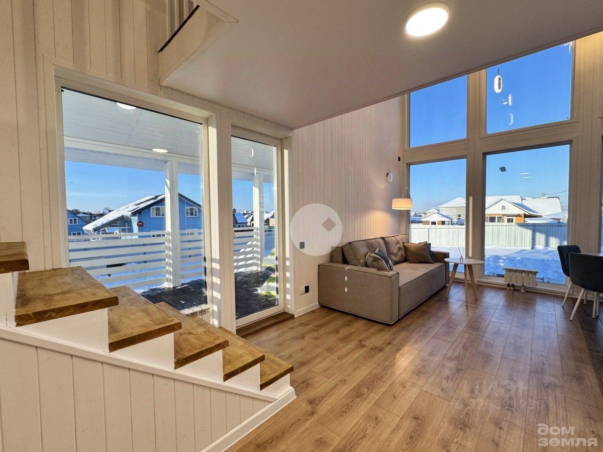 кухня-гостиная с панорамным окном 25 м2, две спальни на 1-м этаже и мастер-спальня на втором этаже со своим санузлом + вторая гостиная со вторым светом и места для хранения.