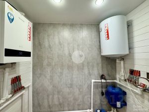 - отопление - электрический котел 12 кВт, радиаторы по дому и теплый пол: в гостиной, кухне, прихожей и в обоих санузлах